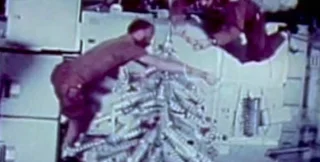 Через п'ять років, 1973 року, люди відсвяткували перше Різдво на борту космічної станції. Три члени екіпажу американської станції Skylab — Джеральд Карр, Вільям Поуг і Едвард Гібсон — на низькій навколоземній орбіті побудували різдвяну ялинку із залишків харчових контейнерів і прикрасили її підручними матеріалами.