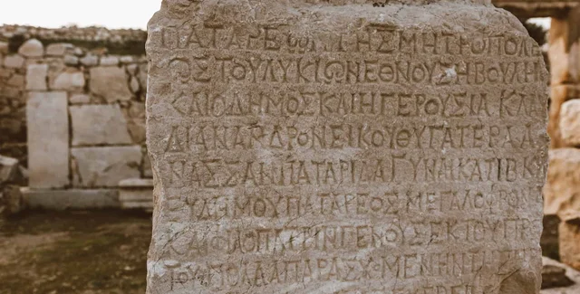 Давньогрецькі тексти, викарбувані на камені | Фото: ROMAN ODINTSOV/Pexels