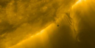 На отриманих зображеннях Меркурій виглядає як чорний диск, який рухається на тлі у правій нижній частині Сонця. І ця крихітна чорна пляма значно відрізняється від темних сонячних плям, які видно набагато вище на Сонці. Це регіони на зірці, яких народжуються знамениті сонячні спалахи та відбуваються корональні викиди маси, тобто викиди енергії та плазми у космос. Найменша планета Сонячної системи особливо добре помітна на зображеннях після того, як вона залишила диск Сонця і стала видимою на тлі газових структур в атмосфері зірки.