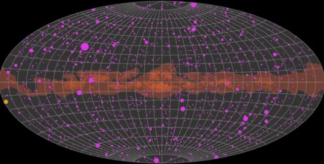 На новій анімації зібрано 1525 джерел гамма-випромінювання, які представлені яскравими пульсуючими колами різного розміру. Чим більше це коло, тим сильніше гамма-випромінювання. Також на відео показано рух Сонця за цей період спостережень, який представлений у вигляді жовтого кола. Ці дані були зібрані космічним телескопом у період між лютим 2022 року та лютим 2023 року.