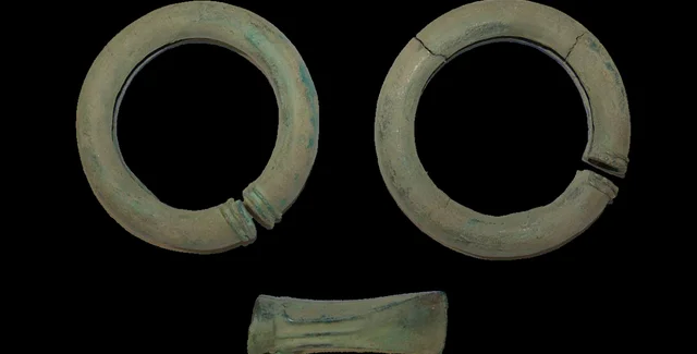 Фахівці виявили сокиру та дві бронзові прикраси у вигляді обруча, які, як вважають, використовували як браслети, нарукавники або натільні прикраси. Однак знайшли їх не в місці поховання серед останків древніх людей. А це зі свого боку може вказати на бажання власника зберегти їх під час тодішнього конфлікту.