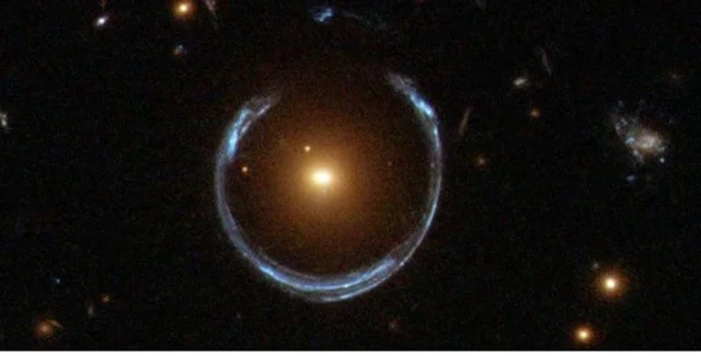 Іноді викривлене світло від далекої галактики набуває форми кільця, що оточує ближчу галактику. Це явище отримало назву кільце Ейнштейна