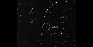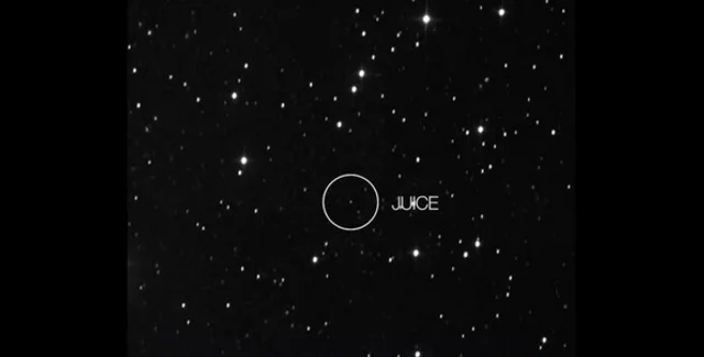 На оприлюдненому відео можна побачити, як JUICE летить у космосі в оточенні яскравих зірок. Хоча фактично сам апарат має вигляд не дуже яскравої білої точки, і щоб його було видно, автори ролика виділили його білим колом.