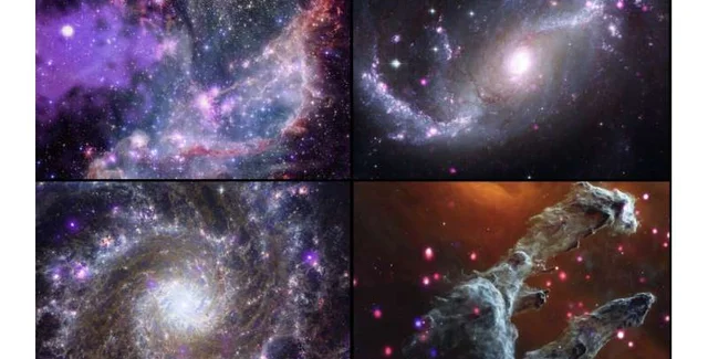 Чотири космічні об'єкти виглядають так, як ніколи раніше їх ще не бачили і все це завдяки поєднанню різних знімків п'ятьох космічних телескопів. По-новому тепер можна поглянути на зоряне скупчення, дві спіральні галактики та одну туманність.