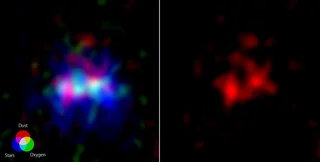 Під час попередніх спостережень за дуже далекою галактикою MACS0416_Y1, яка з'явилася за 600 млн років після Великого вибуху, дали змогу знайти радіохвилі, які випромінюють молекули кисню та пил. Це дві важливі складові міжзоряних туманностей.