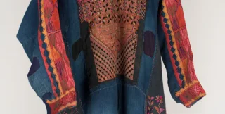 Вишиті візерунки на сукні, ймовірно, походять з попереднього одягу або передавалися з покоління в покоління, відображаючи взаємозв'язок сім'ї та громади.
