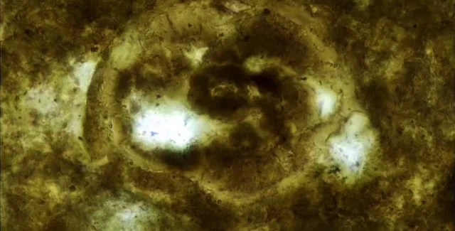 Ультратонкий алмазний зріз дозволив палеонтологам вивчити зрізи стародавніх інфекційних мікробів під мікроскопом. Володаря товстої шкаралупи вчені ідентифікували як нематодного черв'яка, тоді як інші виявилися представниками найпростіших, або спорами моху і папороті.