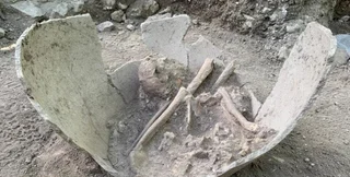 У цій церемоніальній композиції пара великих посудин займала чільне місце. Ці посудини, увінчані керамічними мисками, що використовувалися як кришки, приховували особливу знахідку, яка привернула увагу археологів. В одній із цих посудин лежали останки молодої людини.