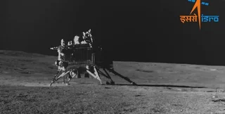Індійське космічне агентство ISRO оприлюднило два знімки посадкового модуля "Вікрам", розташованого посеред пустельної місцевості недалеко від Південного полюса Місяця. Ці зображення зробив напарник апарату, місяцехід "Праг'ян", за допомогою своєї навігаційної камери.