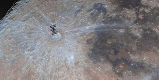 Фотографія Ендрю Маккарті посіла друге місце в категорії "Люди й космос". На цьому знімку показана Міжнародна космічна станція (МКС), що пролітає над кратером Тихо на Місяці. Хоча насправді МКС у 1000 разів ближче до Землі, ніж Місяць, ця перспектива створює враження, ніби МКС насправді обертається навколо нашого супутника.