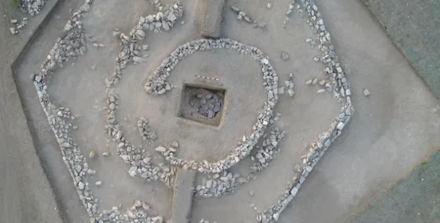 Зовнішні кам'яні стіни споруди, які археологи називають "пірамідою" або "ступінчастою пірамідою", мають шестикутну форму. Інтригує те, що її внутрішні стіни утворюють лабіринтовий прохід, який веде до центральної могили. Частини цієї загадкової споруди колись були приховані під земляним насипом, що залишає відкритим питання про те, чи мала вона колись дах, чи залишалася під впливом стихії.