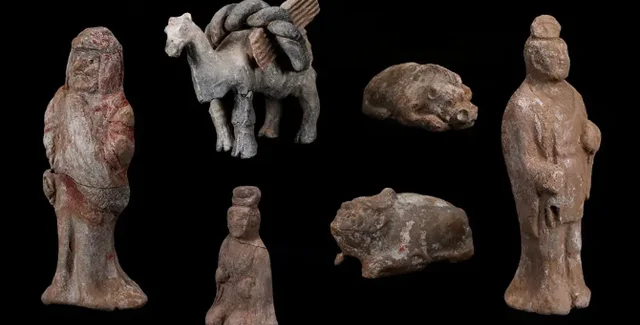 Внутрішнє святилище гробниці, розташоване на глибині 10 метрів, містить цілу низку поховальних дарунків. Серед цих підношень помітні артефакти у вигляді керамічних посудин і статуеток, майстерно відтворених для зображення воїнів, кінних загонів, величного верблюда і загадкових істот.