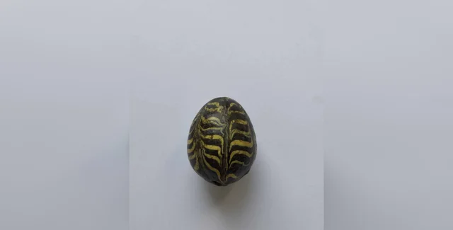 "Писанка менша, ніж звичайне куряче яйце, її довжина становить 4,5 сантиметра. У порожнині яйця є глиняне або ж кам'яне калатальце. Найімовірніше, виріб не був іграшкою чи звичайною побутовою річчю. Певно, це виріб, пов'язаний із релігією", — розповів Верба.