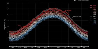 Дослідники також зазначають, що середня температура вересня була майже на цілий градус, 0,93°C, вищою за середню температуру за місяць у період з 1991 по 2020 роки. Учені також заявляють, що середня температура вересня 2023 року на рекордні 1,4°C вища за середній показник, зафіксований у період з 1850 по 1900 роки. Крім того, дослідники Copernicus заявили, що нинішній вересень став спекотнішим на 0,05°C, ніж вересень 2016 року, який вважається найспекотнішим календарним роком за всю історію.