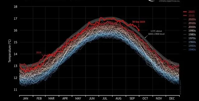 Із січня до вересня 2023 року середня глобальна температура за 2023 рік на сьогоднішній день на 1,40 °C вища, ніж у середньому доіндустріальний період