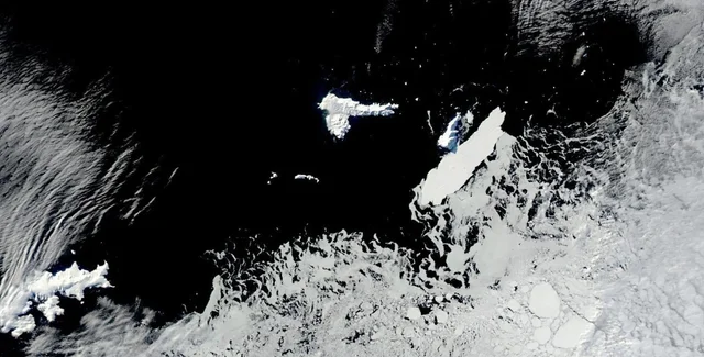 72-кілометровий айсберг врізався в крихітний острів | Фото: NASA