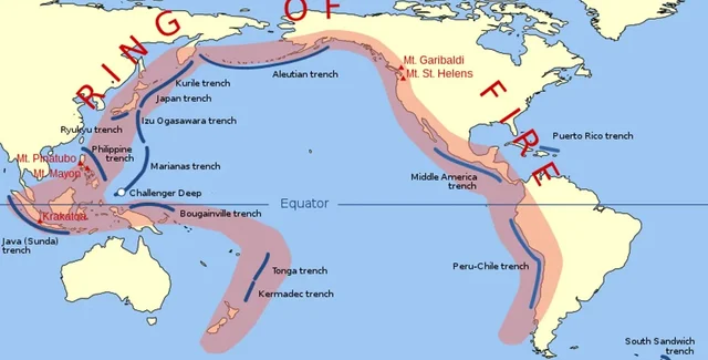 Фактично це "вогняне кільце" являє собою місця, де континентальні тектонічні плити перетинають Тихоокеанську плиту (плиту Наска) — саме тут дві плити дряпають одна об одну та зміщуються в протилежних напрямках.