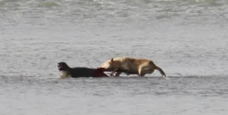 У 2016, 2018 і 2019 роках учені стали свідками того, як вовки тягли трупи каланів. У 2021 році їм вдалося стати свідками того, як три вовки полювали, а потім з'їли видру на острові під час відливу. Цікаво, що після того, як вовки залишили цей район, учені вирушили в експедицію на місце вбивства і виявили свіжу кров. Це стало доказом того, що хижаки не просто з'їли вже мертву видру, а й убили її.