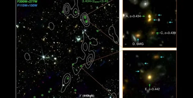Астрономи за допомогою космічного телескопа Вебб виявили дуже довгу структуру з 20 пов'язаних між собою галактик.