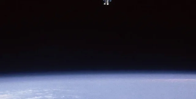 Знімок шаттла "Челленджер", зроблений камерою на шоломі Брюса Маккендлесса II, коли той ширяв у відкритому космосі