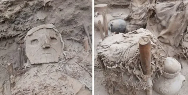 Нещодавно під час розкопок дослідники відкопали поховальні пакунки, що датуються 800-1100 рр. н. е. Інтригує те, що їх знайшли як по одному, так і групами поруч із храмом. Деякі з цих пакунків містять маски, виготовлені з дерева та кераміки, — традиція, яку зазвичай пов'язують з культурою Уарі в поховальних практиках.