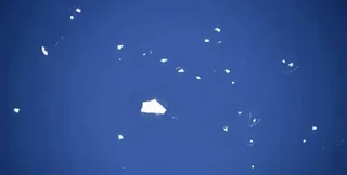 Температура повітря на Землі зростає, і це призводить до того, що все більше й більше величезних шматків льоду відколюються від льодовиків та крижаних щитів і далі пливуть в океані. Ці айсберги, що пливуть у південній частині Атлантичного океану, видно з космосу у вигляді невеликих білих плям на тлі синьої води океану. Саме їх астронавт Андреас Могенсен сфотографував із космосу.