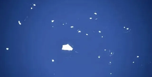 На знімках видно багато айсбергів різних розмірів, серед яких виділяються три найбільші. Можливо, інші шматки льоду є частиною цих айсбергів, які відкололися під час подорожі в океані.