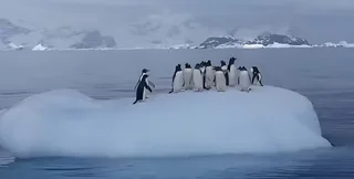 Українські вчені показали пінгвінів, які гойдалися на айсбергу. До звичних для острову Галіндез субантарктичних пінгвінів доєдналися пінгвіни Аделі.