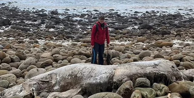 Дослідниця наблизилася до загадкового об'єкта на пляжі та виявила, що це рештки якогось морського мешканця, викинутого на берег. У довжину істота сягала майже 5 метрів, проте ідентифікувати її було надзвичайно важко.