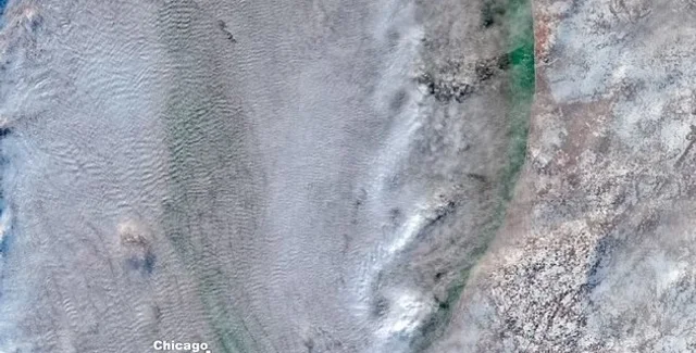 Понад дюжина холодних канадських вихорів, також відомих як мезовихори, попрямували на південь, створивши снігову смугу, яка звивалася над водоймою. Радар показав вихори, що кружляли над озером Мічиган і скинули лавину "снігового ефекту озера" на частини північного кордону США, пише Daily Mail.
