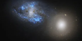 Космічний телескоп Габбл зробив знімок двох галактик, які перебувають у процесі злиття. На знімку видно лінзоподібну галактику NGC 274 і спіральну галактику з перемичкою NGC 275. Обидва об'єкти мають загальну назву Arp 140. Коли завершиться процес злиття галактик, то виникне єдина галактична структура. Науковці з NASA використали метод озвучування даних і перетворили знімок телескопа Габбл на красиву мелодію, пише Space.