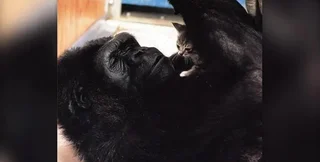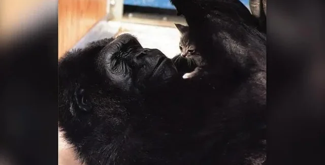 Горила Коко зі своїм сірим смугастим котом | Фото: The Gorilla Foundation