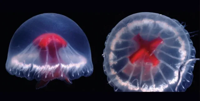 Учені бачили лише одну: в океані знайдено рідкісну медузу з червоною мішенню "на лобі" (фото)