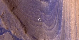 На зробленому знімку марсохід виглядає крихітною точкою в самому центрі кадру, що дає гарне уявлення про місцевість навколо, а також роздільну здатність камери HiRISE. Марсохід, чий розмір можна порівняти з обіднім столом, перебуває в ділянці темних і світлих смуг, що чергуються, на Червоній планеті.