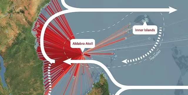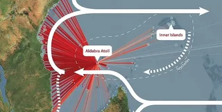 Результати вчених вказують на те, що личинки, які зародилися на віддаленій Альдабарі, врешті-решт поширилися на захід до східного узбережжя Африки, використовуючи Східноафриканську прибережну течію. Звідти корали продовжать переноситися на північ уздовж узбережжя і можуть мандрувати так далеко, що врешті-решт досягнуть південно-екваторіальної суперечності — вона, зі свого боку, віднесе їх назад на схід до Внутрішніх островів Сейшельських островів.