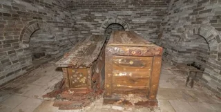 У головній поховальній камері археологи знайшли дві вишукано оздоблені дерев'яні труни, прикрашені складними мотивами. Біля них виявили також порцелянові посудини із зерном, рідинами та оліями, що дають уявлення про стародавні поховальні звичаї та ритуали. Внутрішня труна розписана яскравими квітами, травами та зображеннями павичів, а зовнішня — золотими візерунками у формі діамантів.