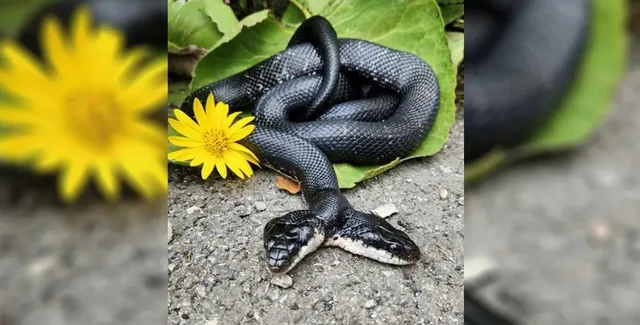 Тигрова Лілія — неймовірно рідкісна двоголова західна щуряча змія (Pantherophis obsoletus), також відома як чорна щуряча змія, є поширеним неотруйним видом на більшій частині території центральної Північної Америки, пише IFLScience.