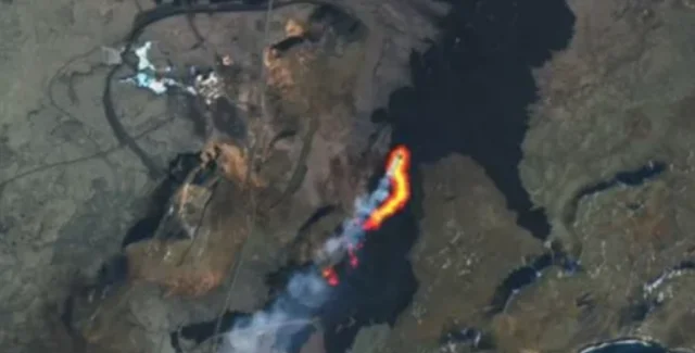 На зображеннях NASA, які зробили з космосу, можна побачити, як збільшується площа землі, яка обвуглена внаслідок виверження вулкана на півострові Рейк'янес, що розташований в Ісландії. Про це повідомляє Newsweek.