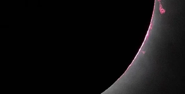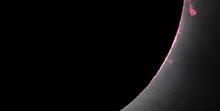 Під час повного сонячного затемнення по краях чорного диска Місяця були помічені потоки плазми рожевого кольору, що мають гігантський розмір.