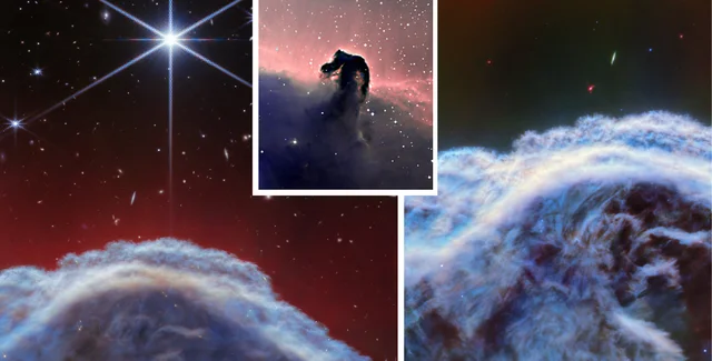 Згідно з дослідженням, опублікованим у журналі Astronomy & Astrophysicals, космічний телескоп Вебб використовував прилади ближнього і середнього інфрачервоного діапазону, щоб зробити нові приголомшливі знімки відомої туманності Кінська Голова. У результаті астрономи виявили особливості цієї структури, які раніше не були відомі астрономам, пише ScienceAlert.