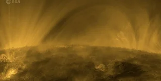 Згідно з даними ЄКА, температура в найяскравіших місцях на відео становить близько 1 млн градусів за Цельсієм. Темні частини Сонця виглядають так, тому що матеріал у цих регіонах трохи холодніший і поглинає радіацію.