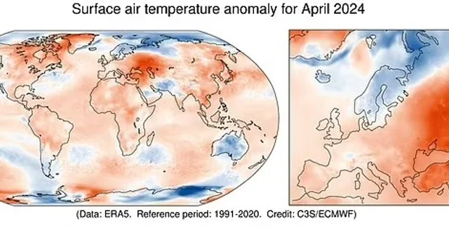 Дані Служби ЄС зі зміни клімату Copernicus свідчать про те, що минулий місяць був теплішим, ніж будь-який попередній квітень за всю історію спостережень. Дослідники вважають, що підвищення приземної температури повітря було пов'язане з рекордним рівнем парникових газів в атмосфері Землі, а також з Ель-Ніньйо, що все ще панує в Тихому океані та впливає на погоду по всій земній кулі.