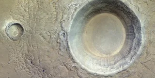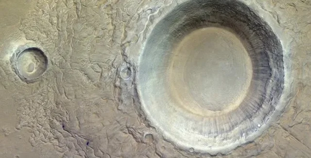 Орбітальний апарат TGO надіслав на Землю нову фотографію величезного кратера, який утворився внаслідок падіння астероїда в далекому минулому. "Герой" зображення розташований у ще більшій ударній структурі на Марсі під назвою Рівнина Утопія. Це найбільший ударний кратер не тільки на Червоній планеті, а й у всій Сонячній системі. Він має діаметр приблизно 3300 км, що в 2 рази більше протяжності пустелі Сахара з півночі на південь.