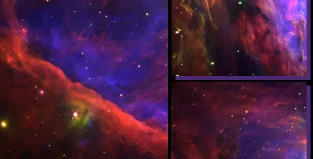 Туманність Оріона розташована на відстані 1500 світлових років від нас і є найближчим до нас великим регіоном космосу, де виникають нові зірки й існують новонароджені зірки. Телескоп Вебба зробив нові фотографії туманності Оріона з безпрецедентною деталізацією. Зокрема, астрономи детальніше побачили гребенеподібне утворення з газу та пилу, відоме як перемичка Оріона.
