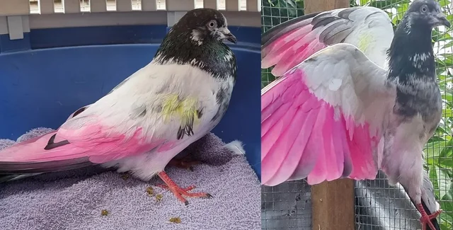 Ще одного голуба доправили до притулку для тварин Пудз у Південному Кіллінгхолмі (Англія), після того, як його пофарбували в рожевий колір. За словами засновниці заповідника Шени Фейрлесс, заради лише кількох хвилин розваги, люди фарбують пір'я голубів, проте птахам у результаті доводиться провести все життя з наслідками цієї дії. На щастя, голуб, схоже, прижився в заповіднику й одужує.