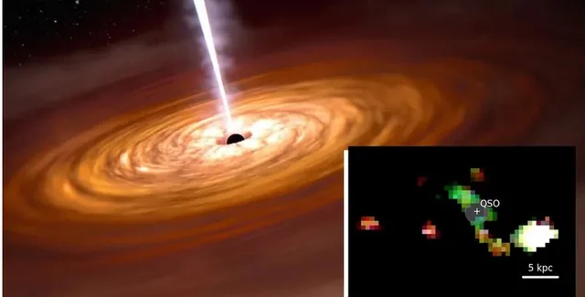 Астрономи стали свідками злиття трьох масивних галактик, у центрі однієї з яких розміщена активна надмасивна чорна діра, що створює один із найяскравіших об'єктів у Всесвіті. Це відкриття допоможе астрономам краще зрозуміти еволюцію надмасивних чорних дір і галактик у перший мільярд років після Великого вибуху. Результати дослідження опубліковані в журналі Astronomy & Astrophysicals, пише Live Science.