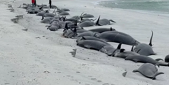 Трагічна подія сталася на березі пляжу на Оркнейських островах — 77 китів одночасно викинулися на берег. Дослідники зазначають, що ця масова загибель морських гігантів стала найбільшою за століття у Великій Британії, пише Daily Mail.