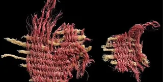 Стародавній дивовижний текстиль, виявлений вченими в "Печері черепів", являє собою смугасту тканину, приблизно з 50 нитками на сантиметр в утоковій системі та 10 нитками на сантиметр в основі. Утокові нитки розташовані щільно, а нитки основи розташовані далі одна від одної. Вчені виявили, що пофарбовані червоні нитки були сплетені між незабарвленими нитками основи.