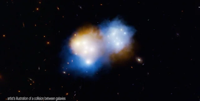 Астрономи спостерігали за зіткненням двох галактичних скупчень під загальною назвою MACS J0018.5+1626, за допомогою наземних і космічних телескопів. Хоча галактики всередині скупчень не постраждали від зіткнення, величезні запаси газу між галактиками зіштовхнулися, і цей газ став турбулентним і ще більш гарячим.
