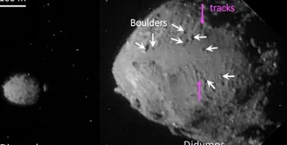 Виявилося, що на великих висотах поверхня Дідіма нерівна, вкрита картерами, і там є багато каменів завширшки від 10 до 160 метрів (діаметр самого астероїда приблизно 800 м). На низьких висотах поверхня більш гладка там менше великих каменів і кратерів. На поверхні астероїда Діморф (діаметр 160 м) астрономи виявили каміння абсолютно різних розмірів всюди. Хоча на цьому астероїді майже немає кратерів, він покритий тріщинами.